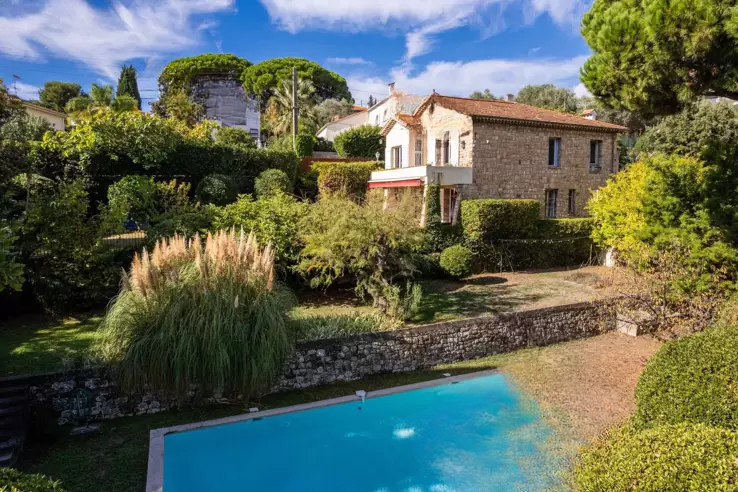 Дом расположен в уютном тупике популярного жилого района Petit Juas и очаровывает своим историческим шармом и зелёной обстановкой без соседей. Построенный в начале века на наклонном участке площадью около 2000 м², ориентирован на юг, он состоит из двух уровней.