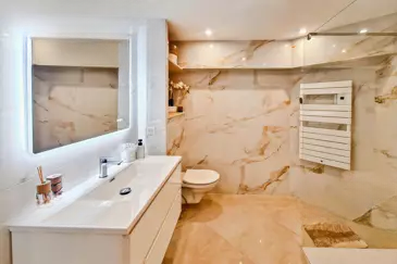 На первом этаже вас встретит прихожая, просторная и очень светлая гостиная/столовая, выходящая в сад на юго-запад с площадью 50 м². Великолепная главная спальня площадью 35 м² с душевой и гардеробной, а также прачечная и кладовая.