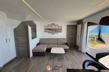 Квартира состоит из светлой гостиной с открытой, обставленной и оборудованной кухней, выходящей на балкон с панорамным видом на море. Это приятное и дружелюбное пространство для наслаждения солнцем и закатами в полной гармонии.