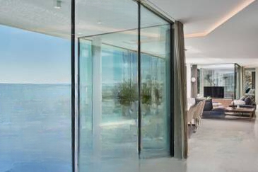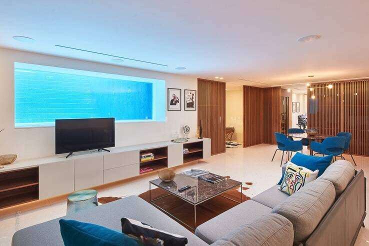 лифт, обслуживающий все этажи, централизованное кондиционирование воздуха и подогреваемый зеркальный бассейн с бесконечным краем.