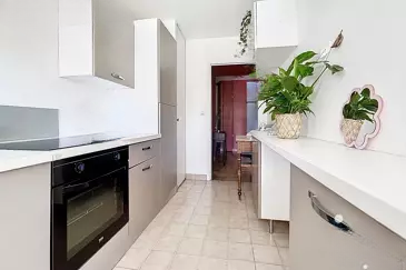 В современном охраняемом жилом комплексе, построенном в 1980 году, есть домофон и лифт. Квартира состоит из светлой гостиной, которая выходит на большой балкон 15 кв. м, кухни с оборудованием (варочная панель, вытяжка, духовка), уютной спальни с частным балконом, ванной комнаты и отдельной туалетной комнаты.