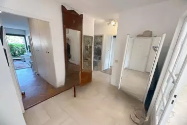 Состоит из: входной зоны, туалета для гостей, многочисленных шкафов, просторной светлой гостиной с выходом на террасу и сад, независимой оборудованной кухни с прямым доступом в сад; трёх спален, две из которых имеют выход на вторую террасу; душевой и ванной комнаты.