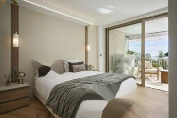 Терраса площадью 22 кв.м, ориентированная на юг, открывает великолепный вид на море, предоставляя привилегированное пространство на свежем воздухе для наблюдения за закатами.
