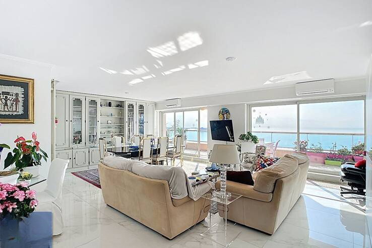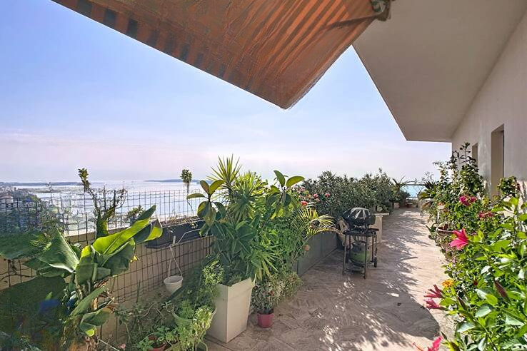 В высококлассной резиденции с консьержем и бассейном откройте для себя эту уникальную квартиру площадью 122 кв. м, расположенную на последнем этаже с непревзойденным видом на море и редким комфортом.