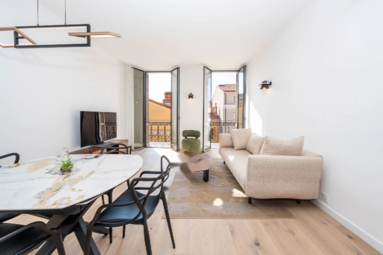 Светлая и элегантная гостиная выходит на южный балкон с открытой, обставленной и оборудованной кухней, прачечной и гостевым туалетом. Это редкий и востребованный адрес, идеально подходящий для pied-à-terre, высокодоходной сезонной аренды или даже основной резиденции в самом центре жизни Канн.