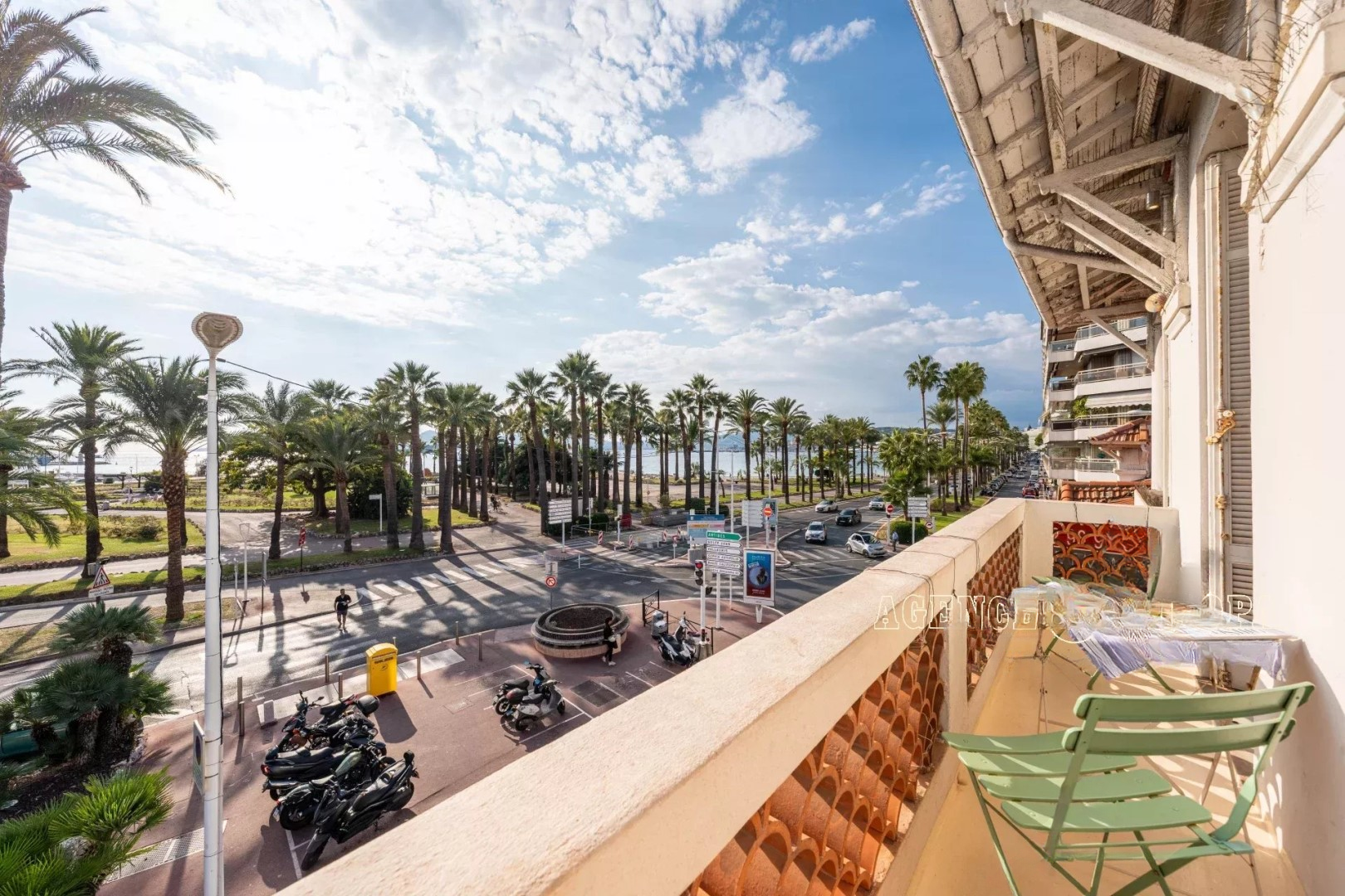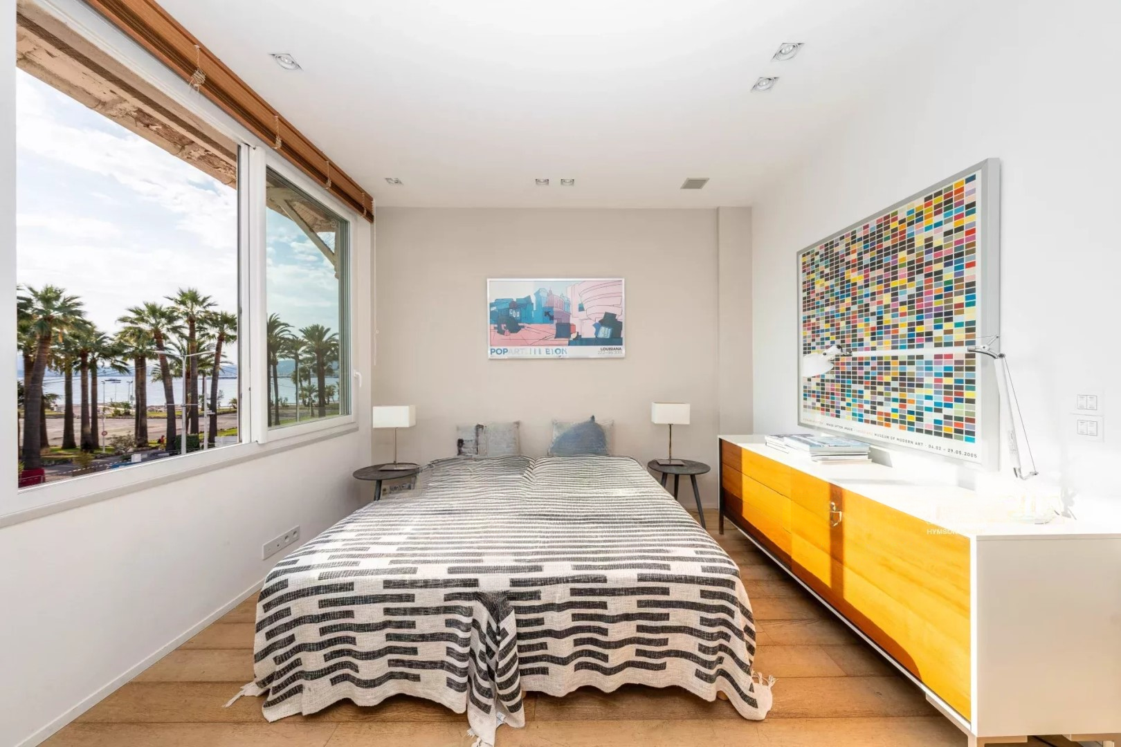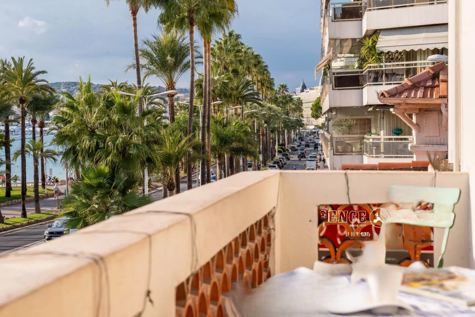 Расположенный на последнем этаже, апартамент предлагает потолки высотой 3.10 м, светлую гостиную и спальню с исключительным видом на море и пальмы .