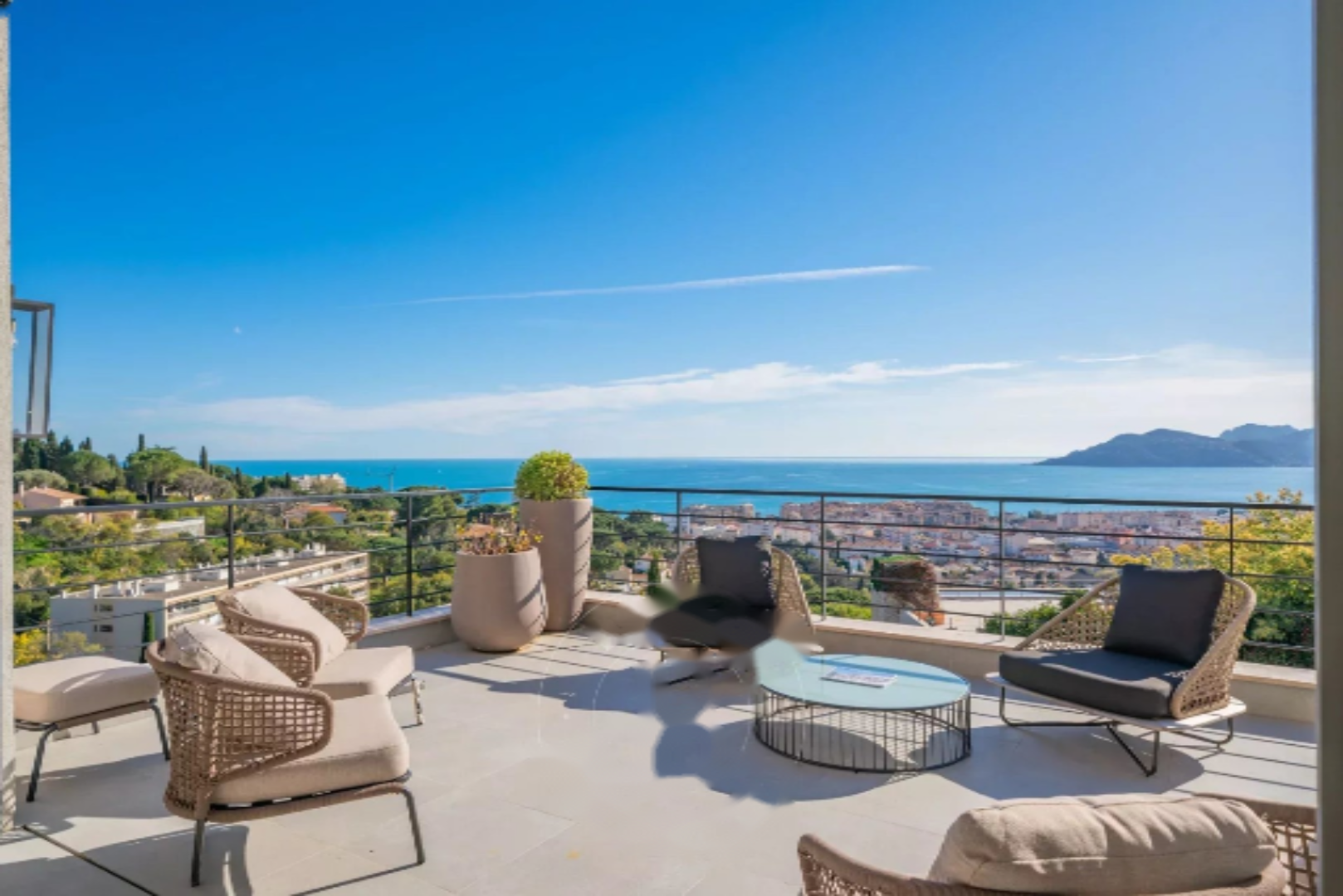 Канны: Расположенная в живописном районе La Croix des Gardes, эта просторная современная вилла, полностью отреставрированная, находится в тихом месте, без посторонних глаз, и открывает панорамный вид на море и Эстерель.