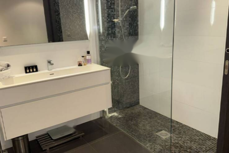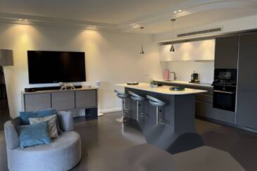 Квартира состоит из большой гостиной; зала и кухни американского типа с центральным островом, двух больших спален и ванной комнаты с итальянским душем. Никакого вида на соседей.