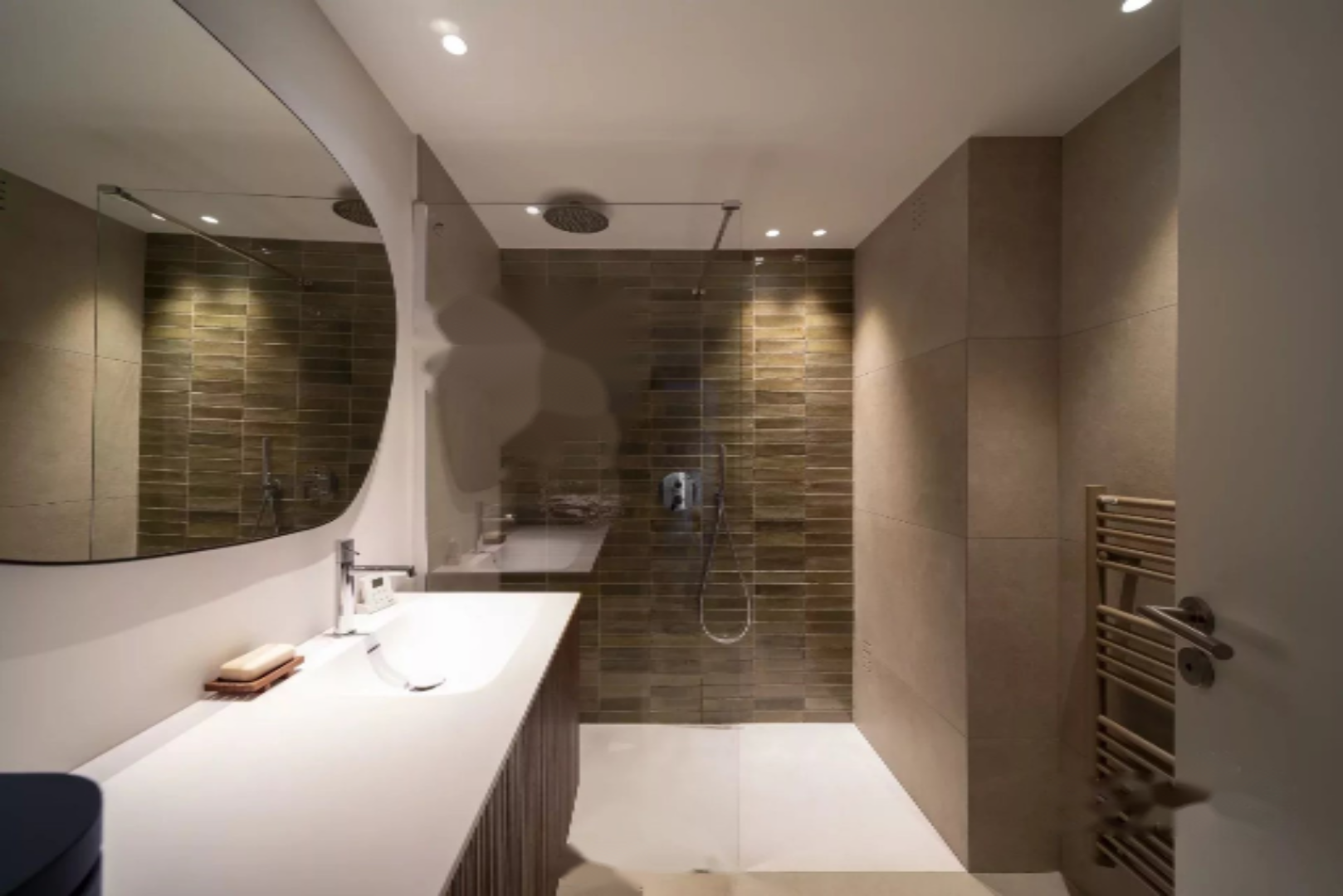 В квартире есть две спальни с ванными комнатами, каждая с собственной гардеробной, ванной и приватными туалетами.