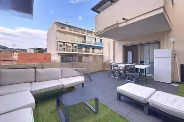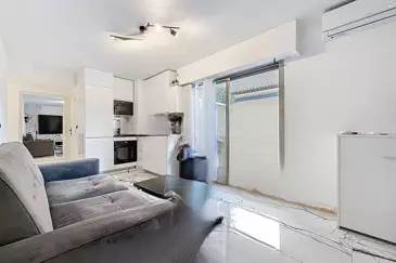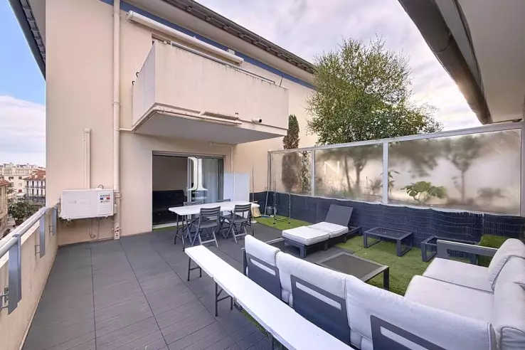 В Каннах, в непосредственной близости от улицы Антиб, находится этот недавно отремонтированный апартамент на предпоследнем этаже здания 1991 года постройки и располагает обширной террасой.