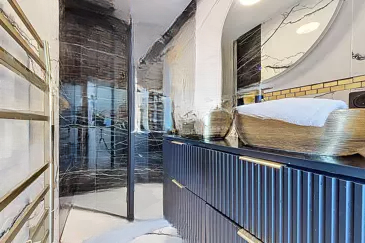 Он включает в себя прихожую, гостиную с кухней, спальню, душевую и отдельный туалет, а также просторную террасу площадью 40 м², подвал и подземную парковку.