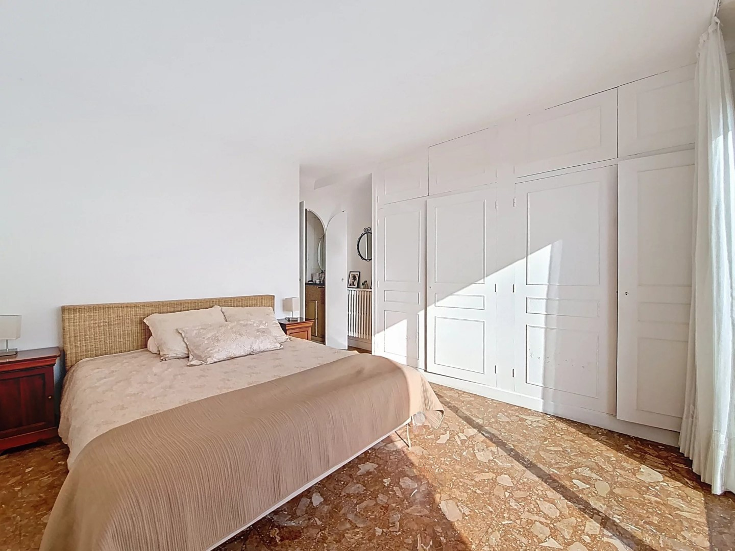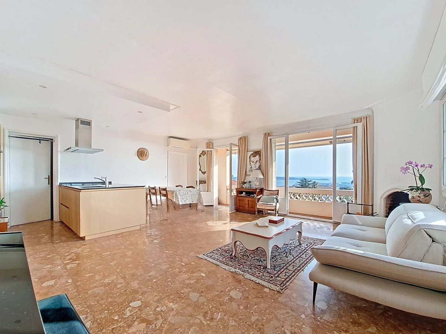 Вас ждет покупка просторной квартиры 3/4 комнаты площадью 100 м² на втором и последнем этаже очень уединенной и исключительно спокойной резиденции. Квартира, залитая светом, предлагает тройную экспозицию с панорамным видом на море, захватывающим вид на острова Лерин и массив Эстерель. Она включает: входную зону, двойную гостиную с открытой оснащенной кухней площадью более 40 м², выходящую на южный балкон. Прачечная. Родительская спальня с ванной комнатой и выходом на балкон с видом на море, отдельная ванная комната и гостевой туалет. Две спальни с гардеробами. Комнатная система кондиционирования. Закрытый гараж с оборудованной электрической зарядной станцией. Уникальные апартаменты! ️