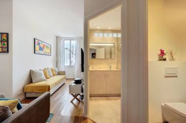 Двухкомнатная квартира 33 кв. м, расположена в самом центре улицы Антиб в Каннах, полностью отремонтирована и ориентирована на юг. Она состоит из прихожей, душевой комнаты, туалета, гостиной с открытой кухней и спальни с шкафом. Установлена канальная система кондиционирования. Отлично подходит для инвестиции или как временное жилье. Продается меблированной.