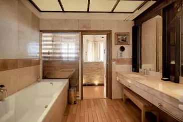 Двухуровневая квартира площадью около 380 кв.м. открывается на первом этаже в просторную гостиную, залитую светом, с выходом на частную террасу площадью 120 кв.м. с бассейном, предлагающую впечатляющий вид на море. Также на этом уровне находится полностью оборудованная отдельная кухня и кабинет. На верхнем этаже расположена главная спальня с ванной комнатой, которая выходит на балкон площадью 30 кв.м. с видом на Средиземное море. Еще четыре спальни, каждая с собственной ванной комнатой, и одна из них с мезонином, образуют зону отдыха.