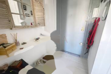 В квартире имеется вход с доступом к кухне, открытой на гостиную, все это ведет на приятную террасу площадью 7 м² с панорамным видом на холмы и видом на море и острова Лерин.