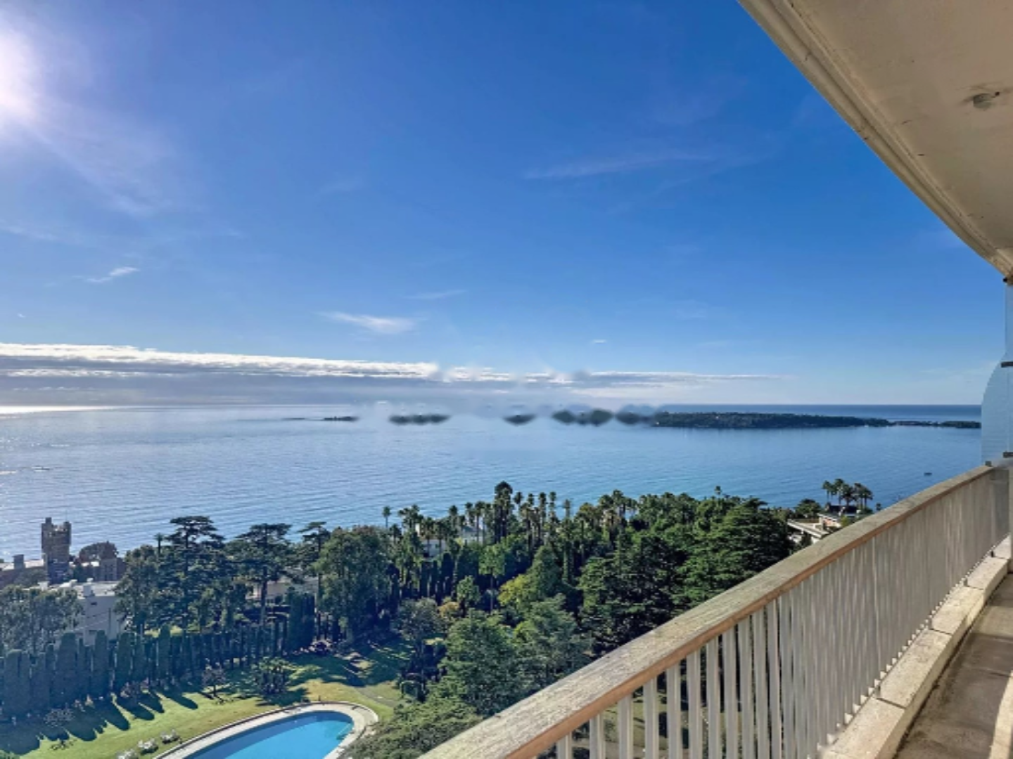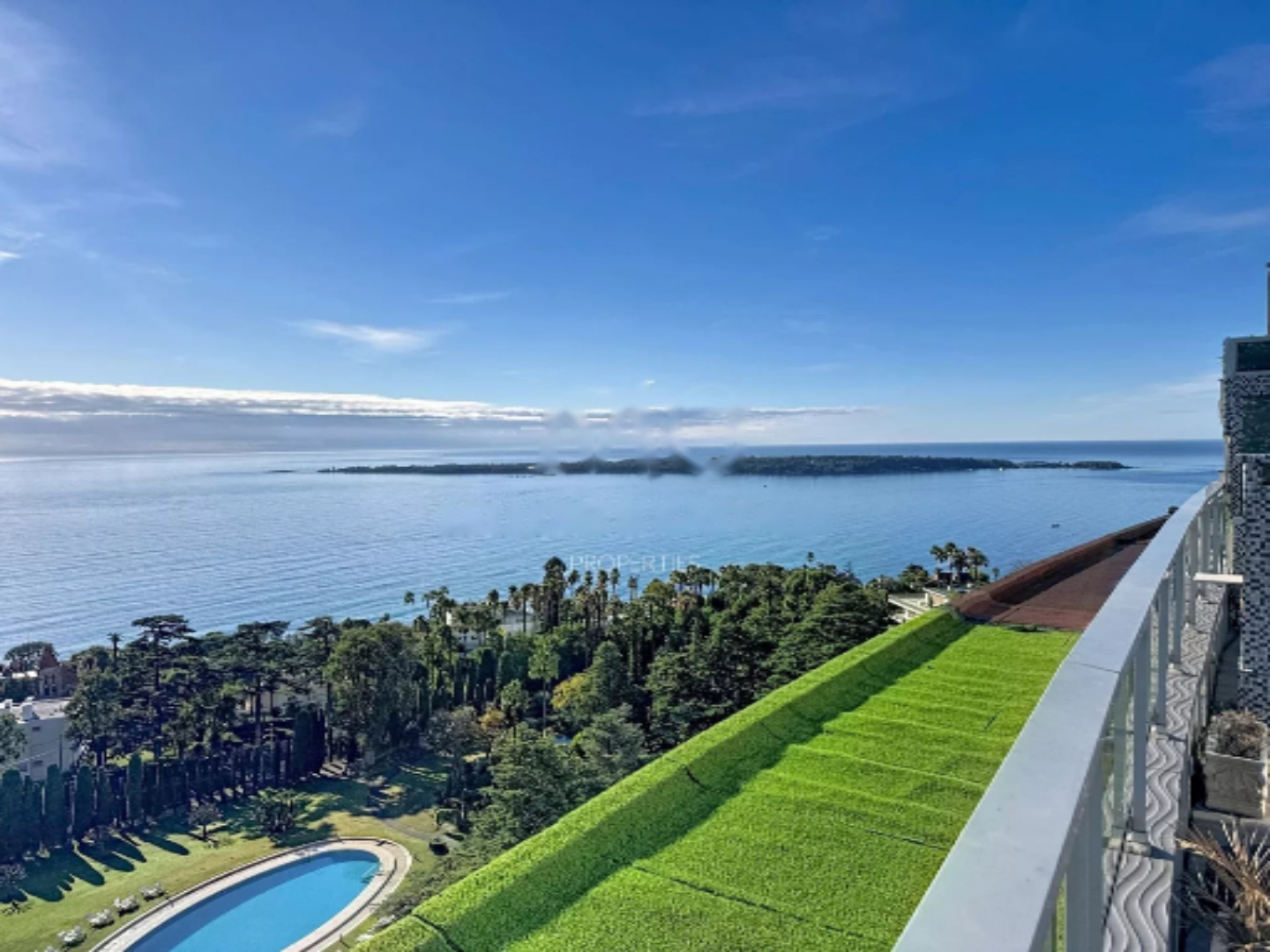 Квартира светлая благодаря открытым углам и террасе площадью 27 м², а также имеет собственную крышу площадью 91 м² с джакузи и панорамным видом на море от мыса Антиб до Эстереля.