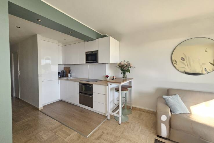 Великолепные 2 комнаты площадью 40 м² в престижном районе Канн с потрясающим видом на Средиземное море, остров Сент-Маргерит и порт дю Мюр Руж.