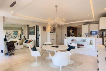 На высоком этаже в престижной резиденции с круглосуточной охраной, напротив Port Canto, находится великолепная сквозная квартира площадью 85 кв. м, полностью отремонтированная в современном стиле, с панорамным видом на море. Вход, гостиная 40 кв. м с оборудованной американской кухней, ведущая на террасу площадью 20 кв. м, спальня 1 с ванной, туалетом и гардеробной, спальня 2, душевая с туалетом, шкафы, балкон, служебная комната, подвал и подземная парковка.