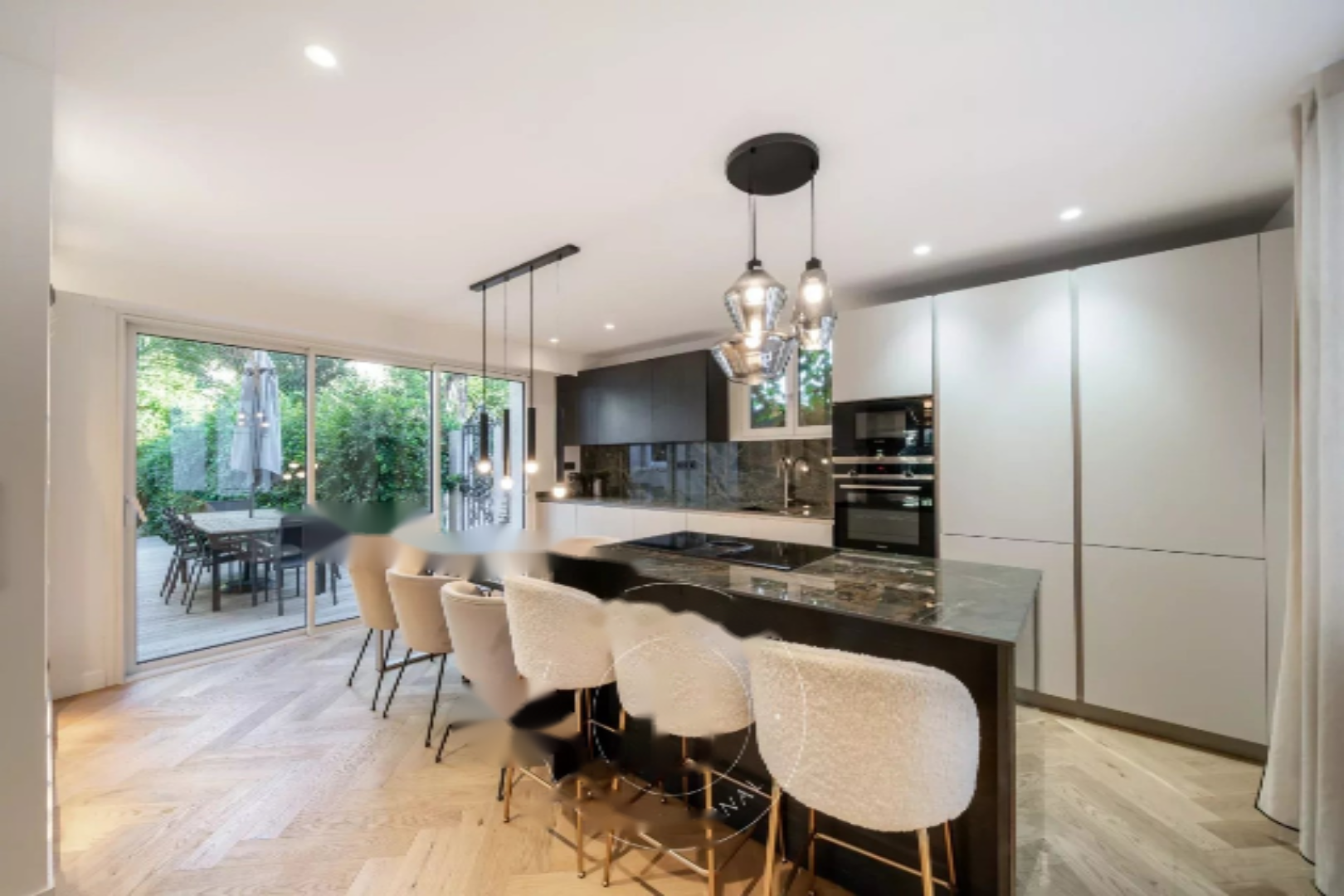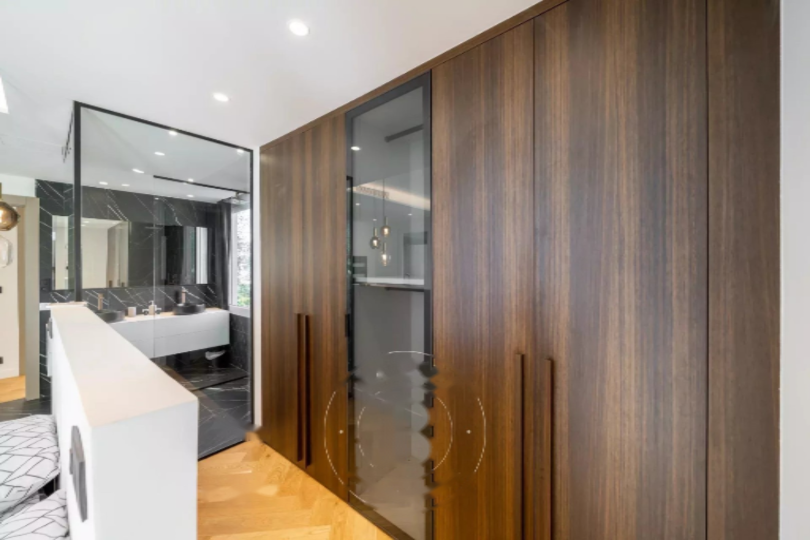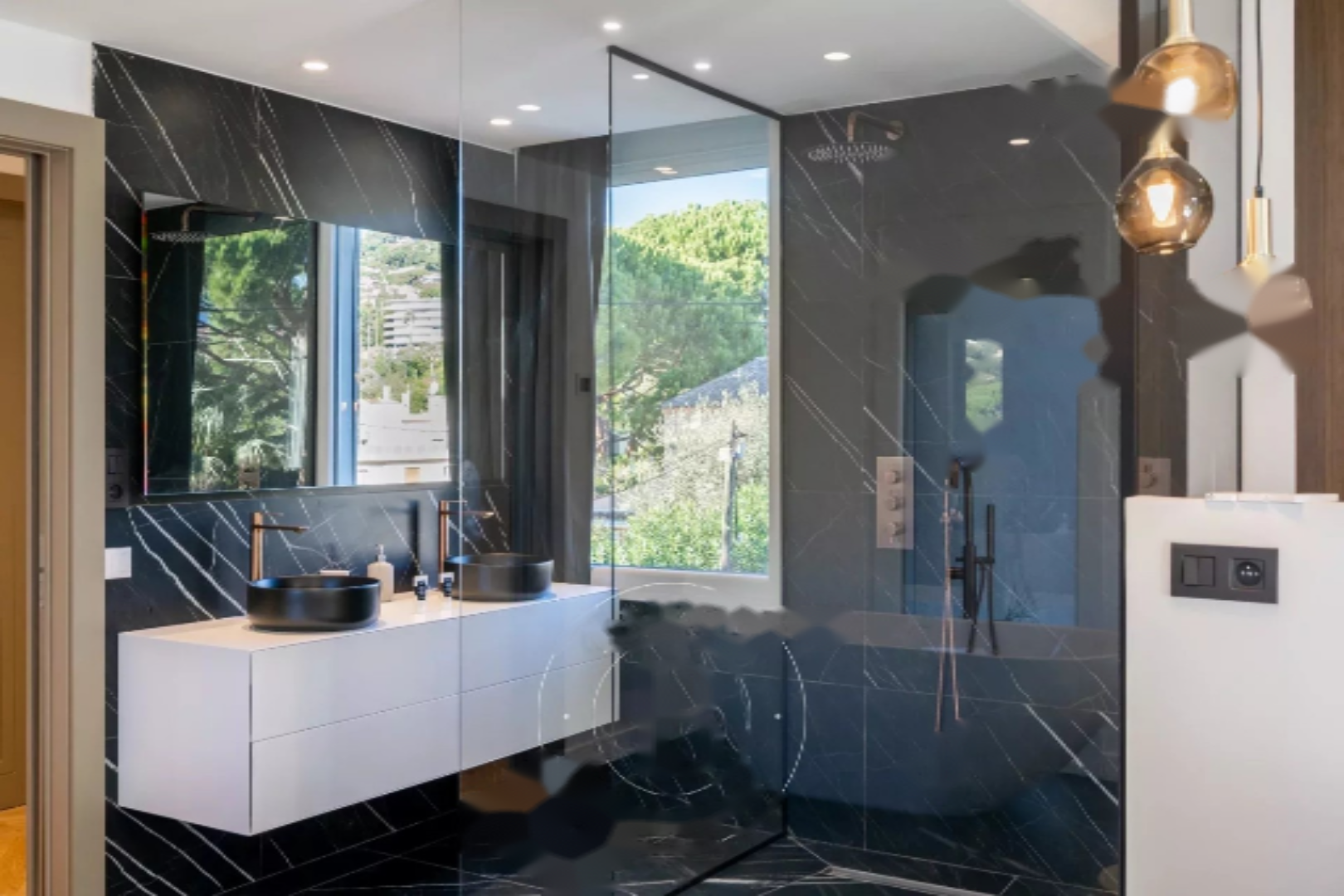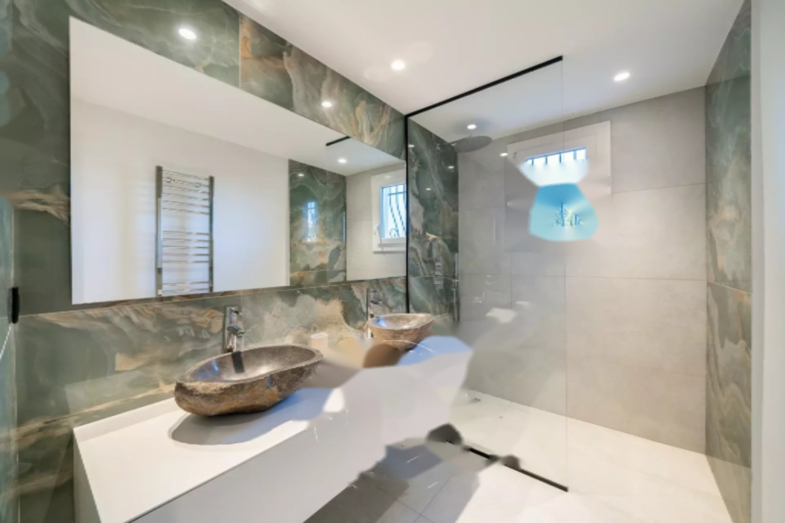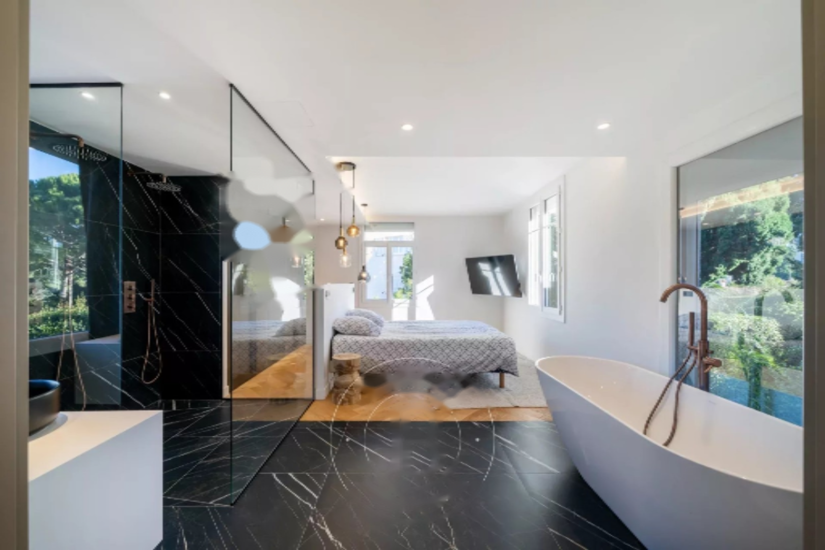 На верхнем этаже расположены 3 спальни и 2 дополнительные ванные комнаты. Сад с джакузи и несколько парковочных мест входят в комплект.
