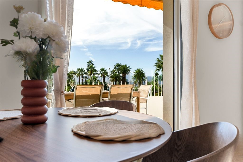 Апартамент открывается прихожей, ведущей в оборудованную кухню и просторную гостиную со столовой, предоставляющую доступ к террасе с южной экспозицией и прекрасным видом на парк и видом на море. Главная спальня имеет прямой доступ к террасе, гардеробную и ванную комнату. Вторая спальня, также с гардеробной и ванной комнатой, дополняет это прекрасно организованное пространство. Реверсивное кондиционирование и множество мест для хранения обеспечивают оптимальный комфорт в течение всего года. ❄️
