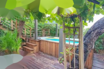 Внешнее пространство — словно рай: Наслаждайтесь несколькими террасами, освещенными солнцем, ухоженным садом, очаровательной маленькой теплицей и жемчужиной собственности: частным плавательным спа для расслабления после насыщенного дня, сохраняя при этом полную приватность.