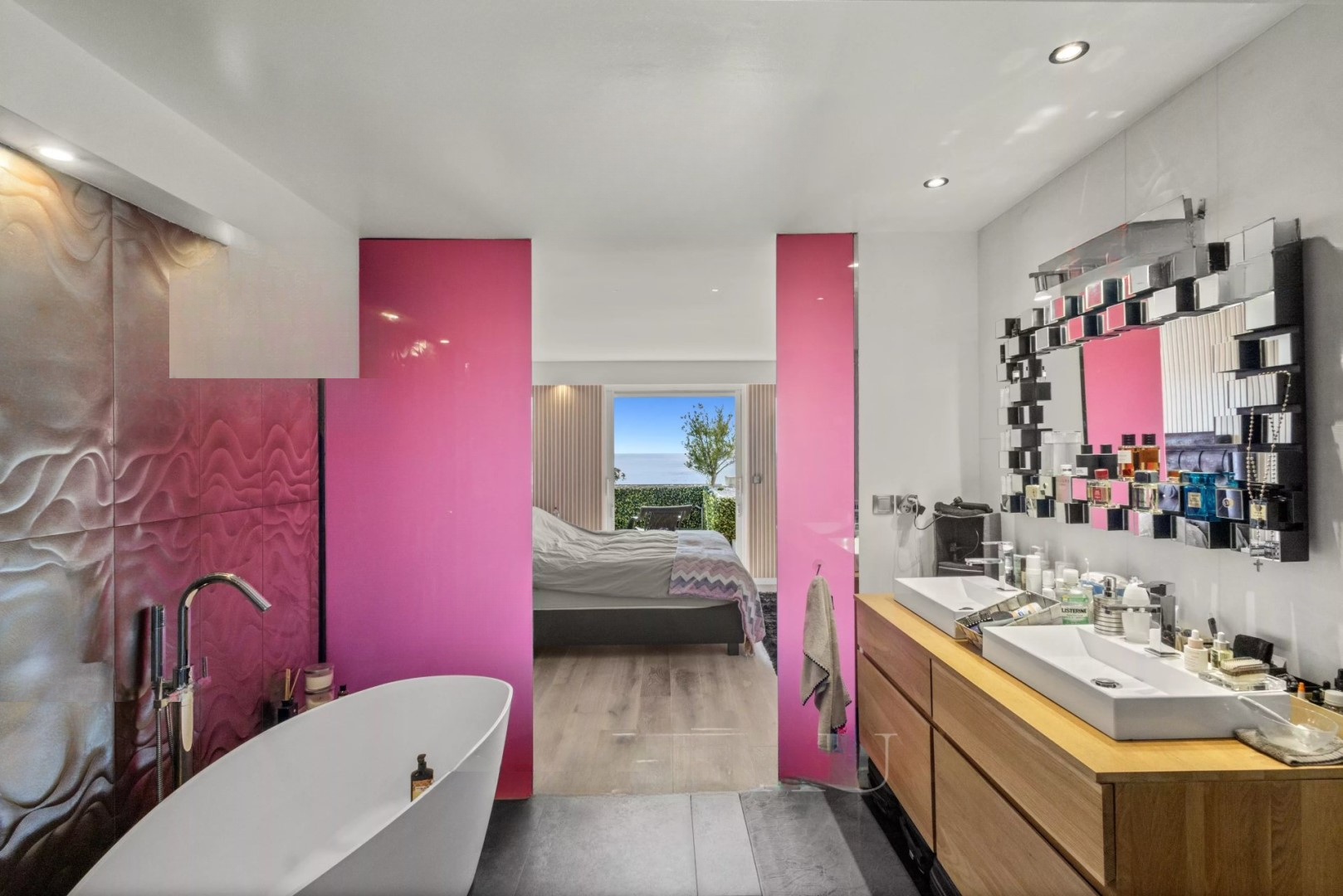 Вид на море с множеством жилых зон для отдыха на открытом воздухе в разное время дня в зависимости от экспозиции. Нет соседей напротив, две спальни с ванными комнатами, современная кухня и тренажерный зал.