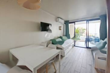 Эта квартира в хорошем состоянии включает в себя гостиную, открытую кухню, террасу с южной ориентацией и видом на море, спальню, душевую с туалетом.