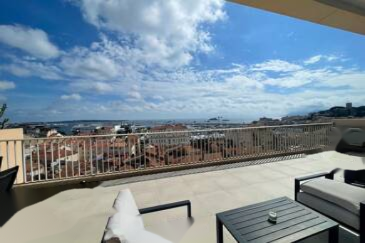 Его редкое преимущество — две великолепные террасы площадью 46 м² и 40 м² с панорамным видом на море и Старый порт. Уникальная среда для жизни в Каннах, сочетающая элегантность и комфорт.