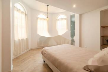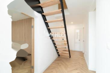 Этаж располагает светлой гостиной с открытой кухней, полностью оборудованной, первой спальней с гардеробной, ванной комнатой и гостевым туалетом. На верхнем этаже находится вторая спальня с отдельной ванной, создающая уютное и спокойное пространство.