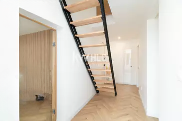 На первом этаже светлое жилое пространство с гостиной и полностью оборудованной открытой кухней, первая спальня с гардеробной, душевая комната, а также гостевой туалет.