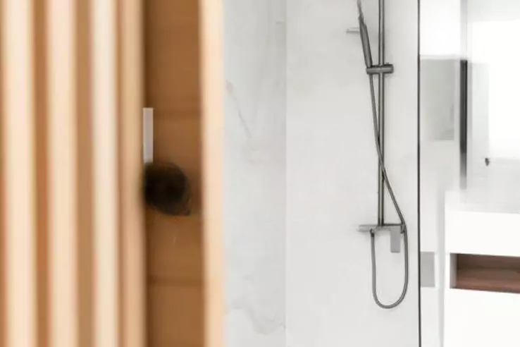 На верхнем этаже вторая спальня-сьют с отдельной душевой комнатой создает интимное и спокойное пространство.