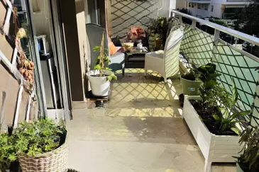 Красивые 2-комнатные апартаменты площадью 49 м², полностью отремонтированные, с просторной террасой на юг без соседей, выходящей на сад.
