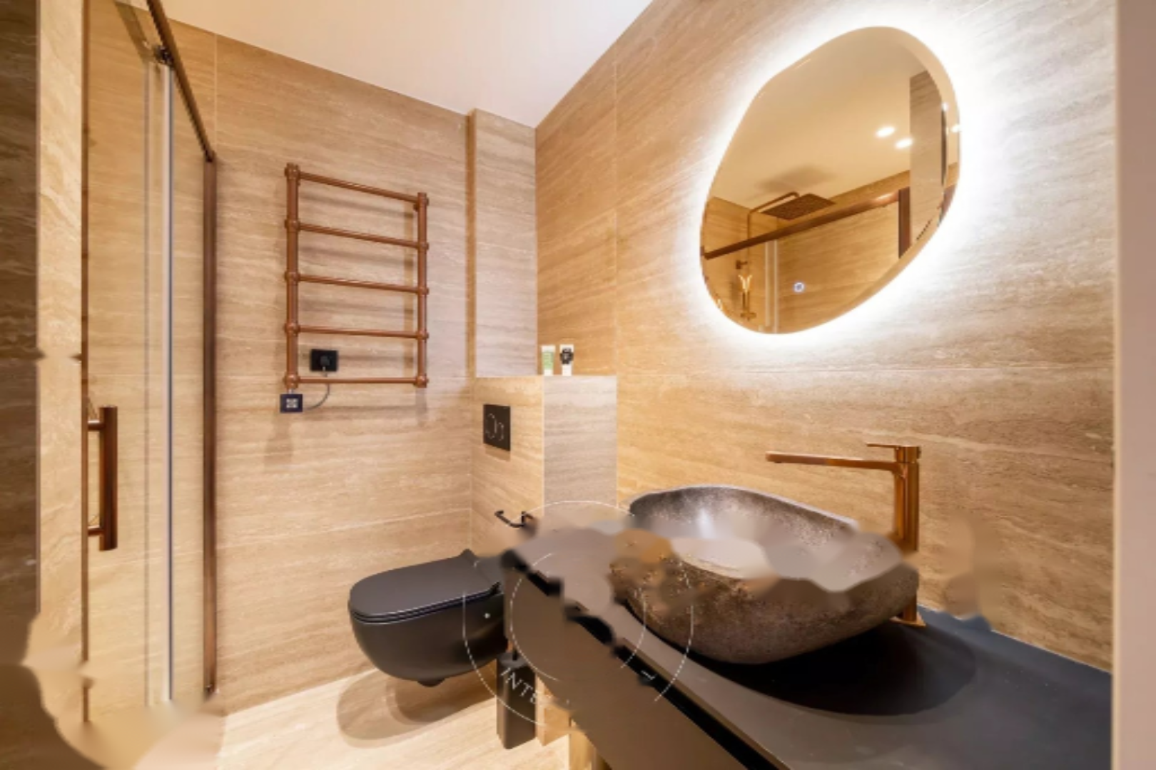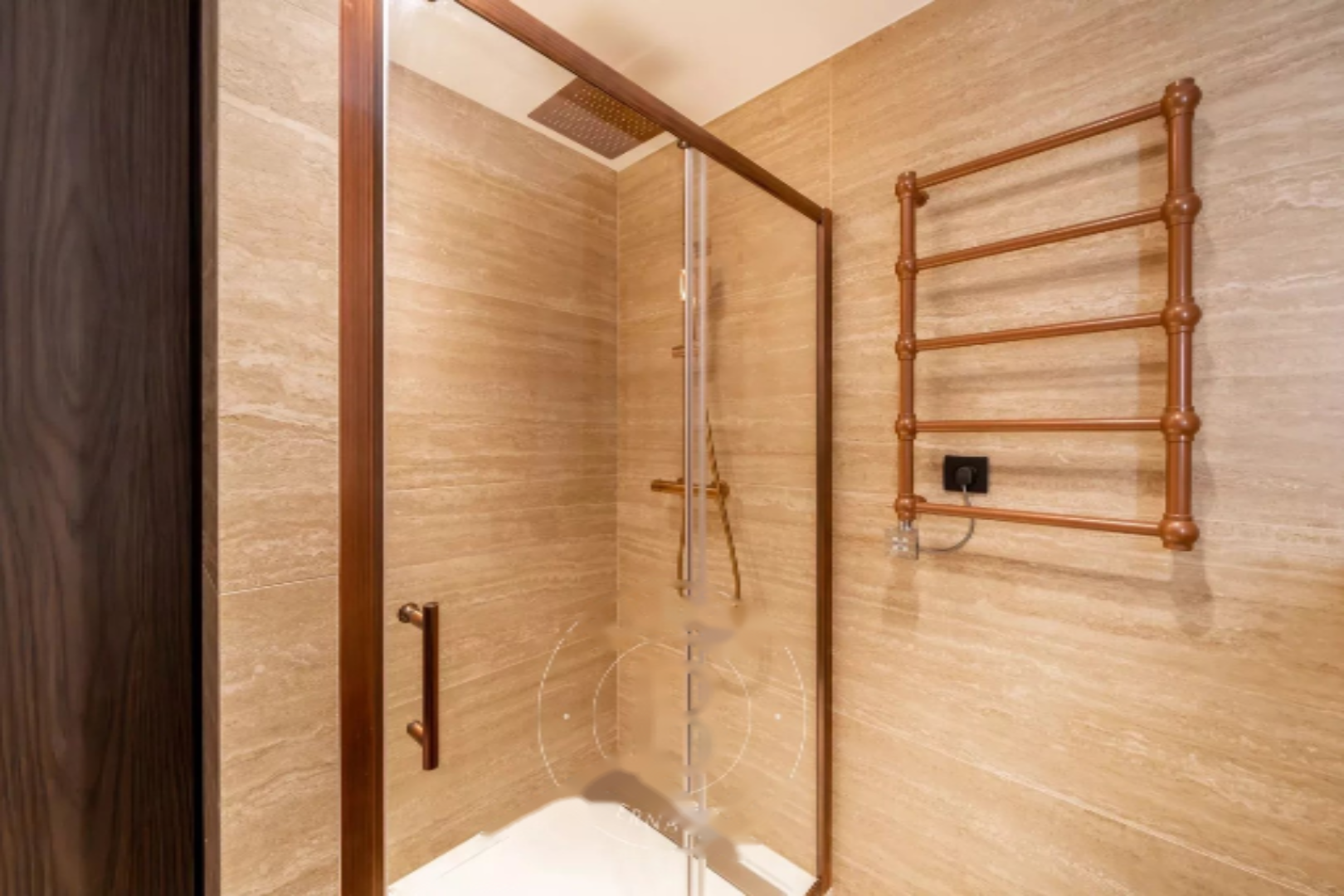Она состоит из светлой гостиной с открытой кухней, выходящей прямо на террасу, а также ванной комнаты.