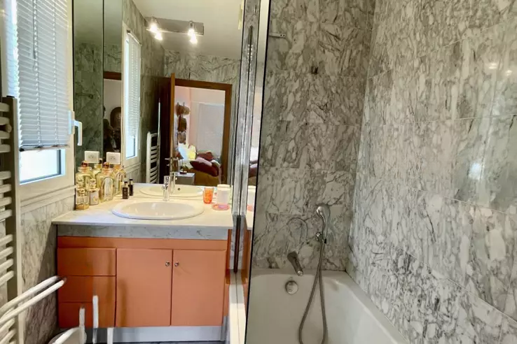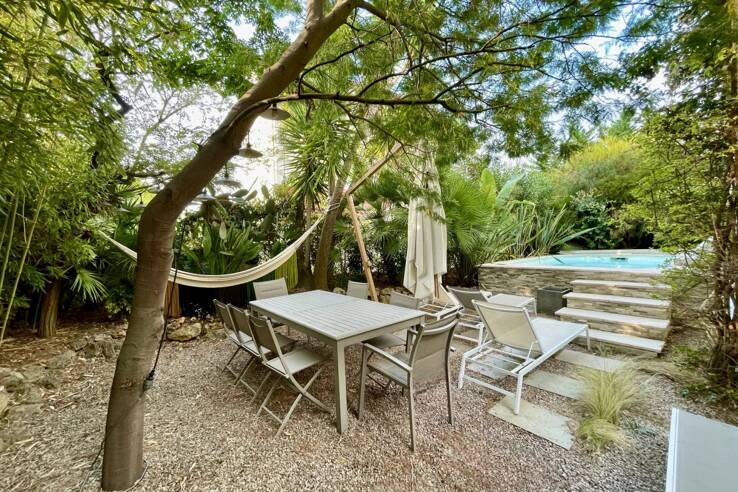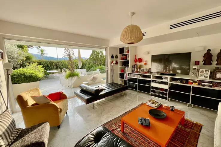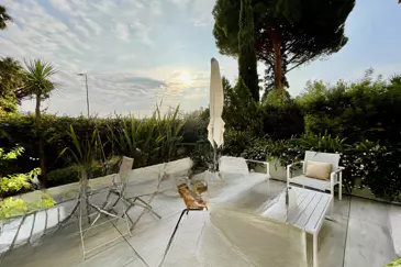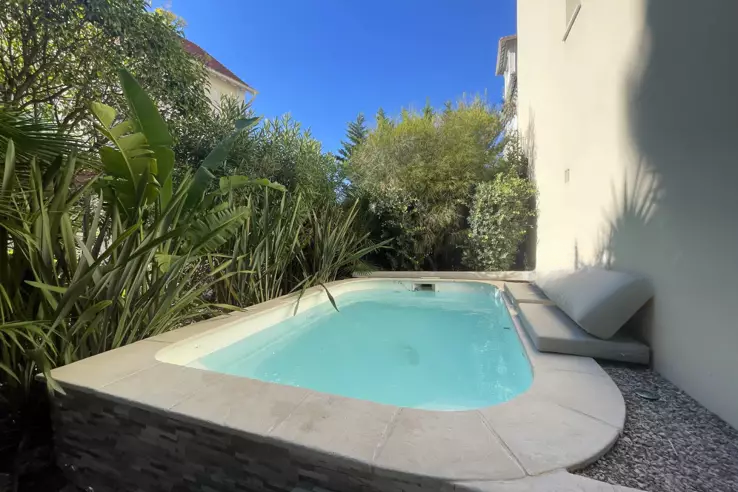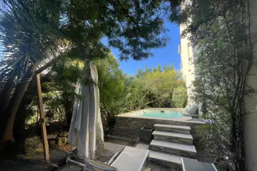 Расположенная в районе Петит Жуас, эта четырёхкомнатная квартира находится на первом этаже с собственным садом и частным бассейном. Просторная гостиная с полностью оборудованной открытой кухней выходит на большую террасу. В апартаментах имеется спальня с ванной, две дополнительные спальни, душевая и отдельный туалет. Площадь террасы составляет 36 кв.м, а сад 170 кв.м с частным бассейном.