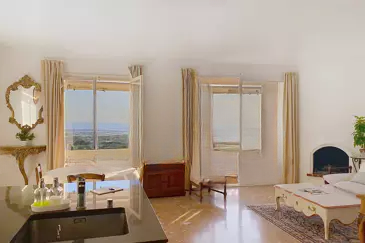 Площадью около 100 м², она включает в себя прихожую, просторный зал – столовую – гостиную, выходящую на красивую террасу с ориентацией на юг, с захватывающим видом на море, от островов Лерен до Эстереля.