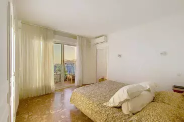 Ночная зона включает главную спальню с душевой, частной террасой и видом на море, вторую спальню, ванную комнату, а также небольшую спальню или кабинет.
