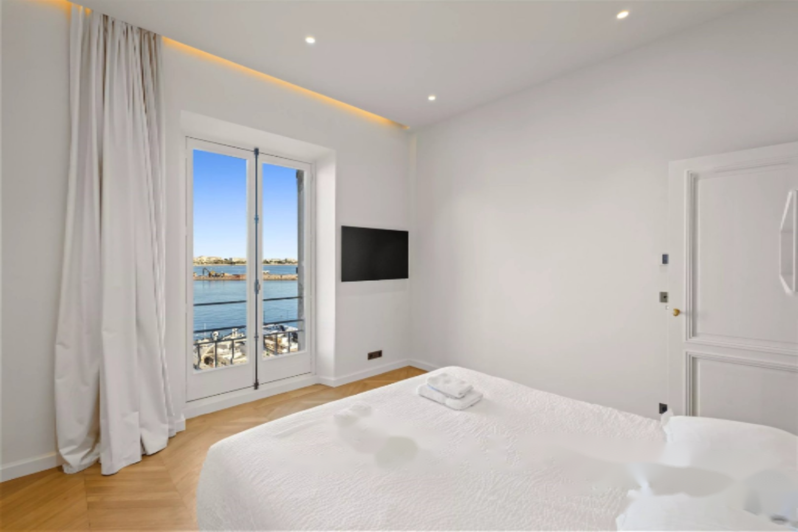 Здание с характером оснащено лифтом. Ремонт сочетает в себе классический и современный стили. Парадный вход открывает перспективу на лодки в порту, современная кухня и столовая, просторная гостиная с видом на море, а также две спальни с собственными ванными комнатами.