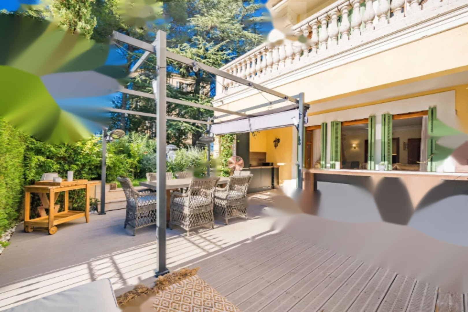 В роскошной резиденции Belle Epoque вы сразу влюбитесь в эту сквозную квартиру с просторными объемами, полностью меблированную, окруженную своим частным садом и террасами. Она гармонично сочетает в себе старинный шарм и современный комфорт.