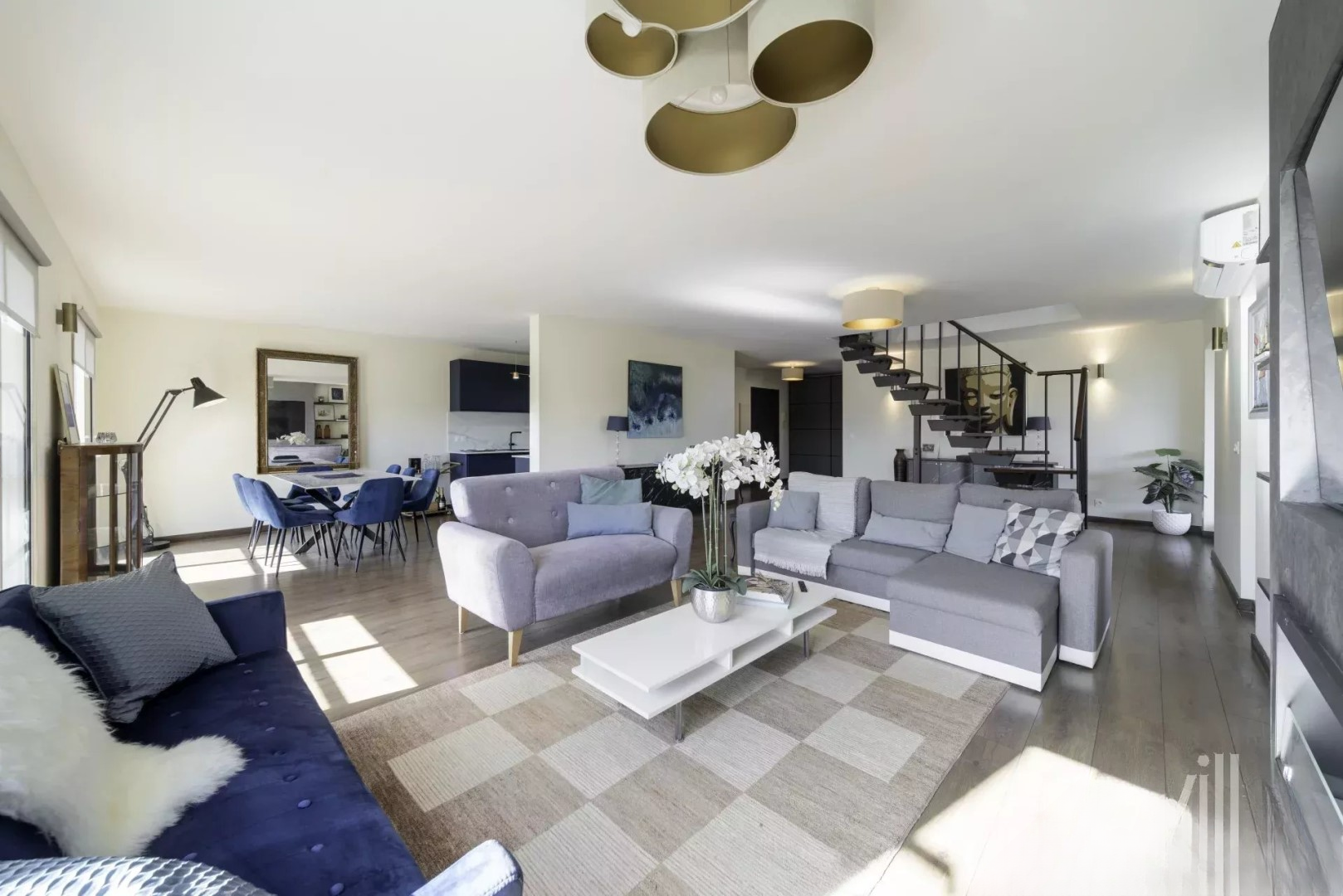 Квартира оснащена кондиционером, электрическими жалюзи и недавно обновленными ванными комнатами, обеспечивающими комфорт и современность. В дополнение: три кладовые и два закрытых гаража дополняют это предложение.