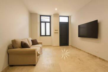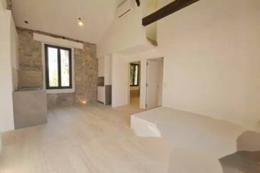 На первом этаже расположены 2 студии, примерно по 25 м² каждая, предлагая гостиную-столовую с открытой кухней, 1 ванную комнату, подвал и внешнее пространство.