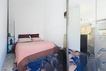 Он состоит из прихожей с платяным шкафом, просторной гостиной с открытой кухней, душевой комнаты с туалетом и спальной зоны в алькове. Большая терраса. Восход солнца с запада.