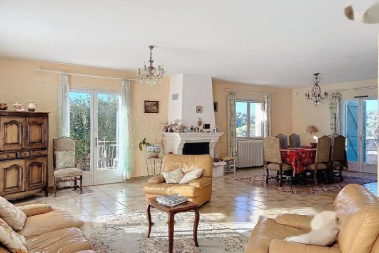 Вилла распределена на трех уровнях и отличается большими объемами, с видом на море с террасы типа тропезьен на этаже. Включает просторную гостиную около 60 м², открывающуюся на юг на террасу, примыкающую кухню, которая может быть открыта, четыре спальни, три ванные комнаты и кабинет.