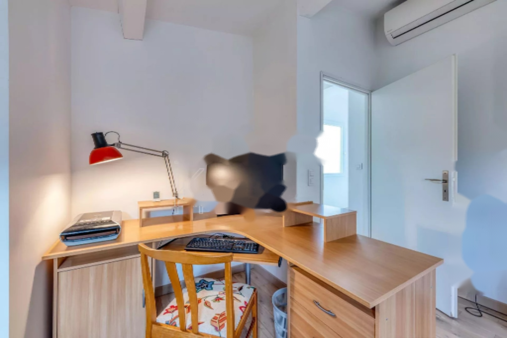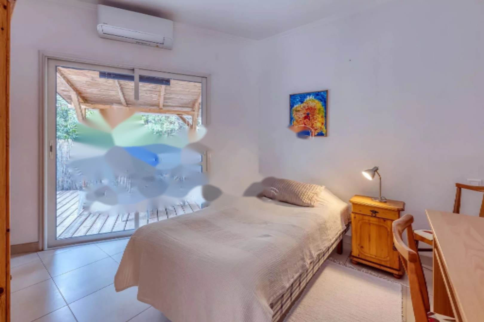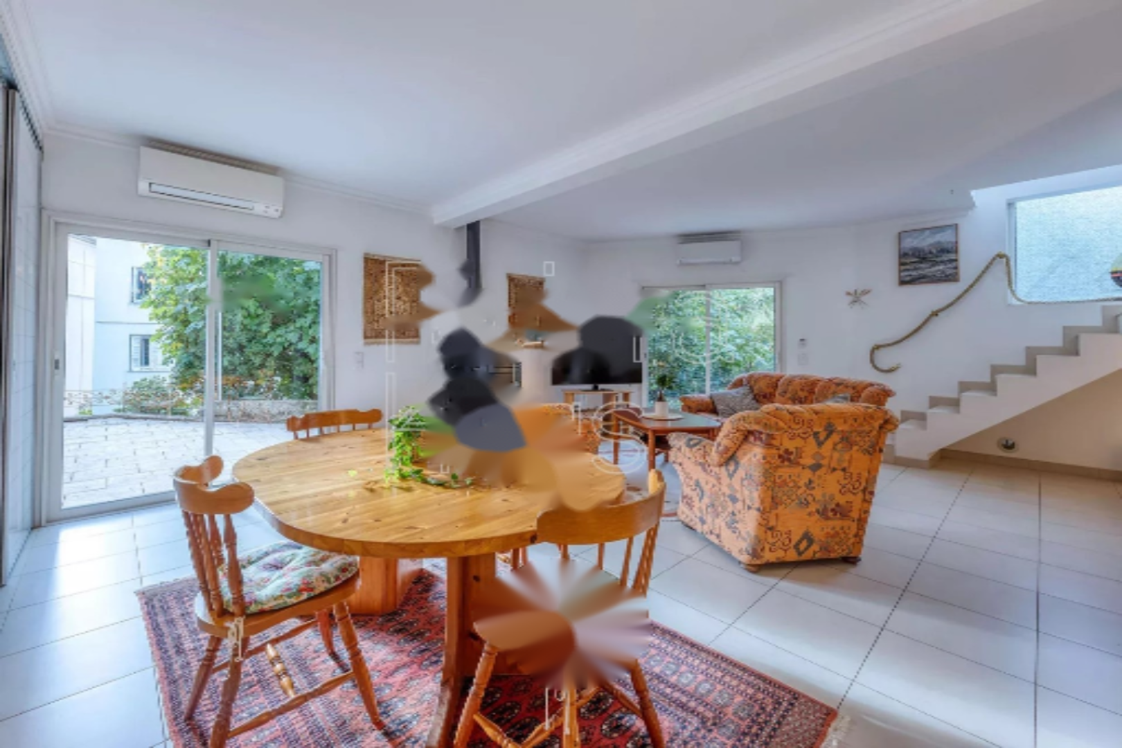 На этаже 3 спальни делят туалет с раковиной. Все комнаты, включая гостиную, оборудованы кондиционерами. Апартаменты пользуются прекрасной юго-западной экспозицией, террасой для обедов на свежем воздухе, балконом 4,3 м², частным гаражом, садовым домиком и частным выходом в центр города.