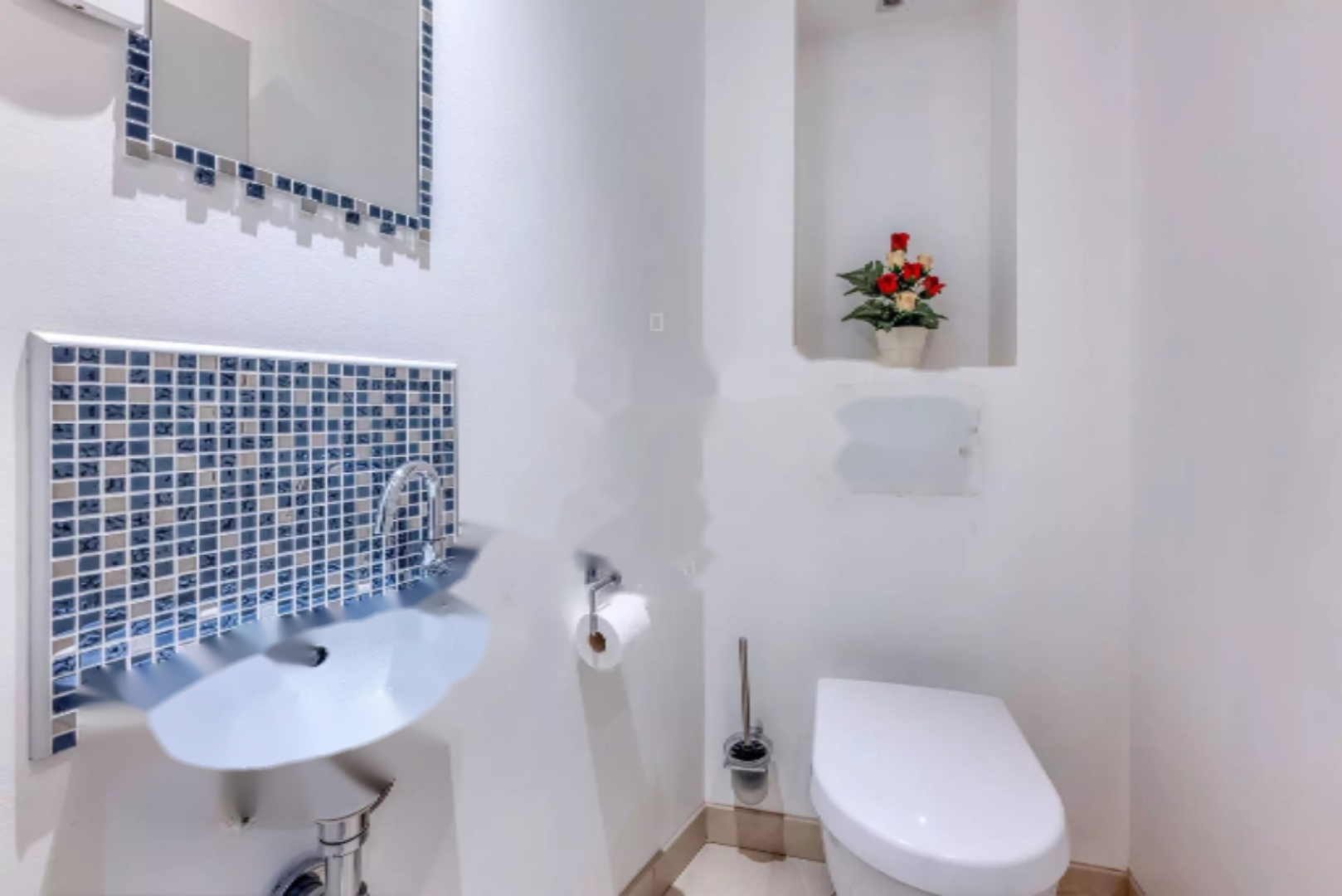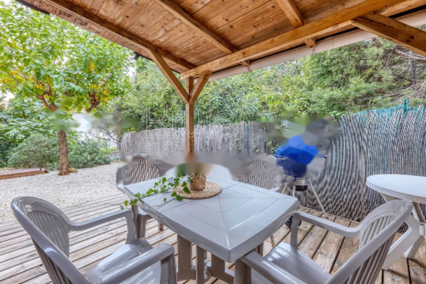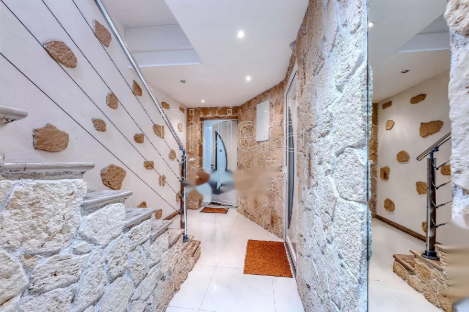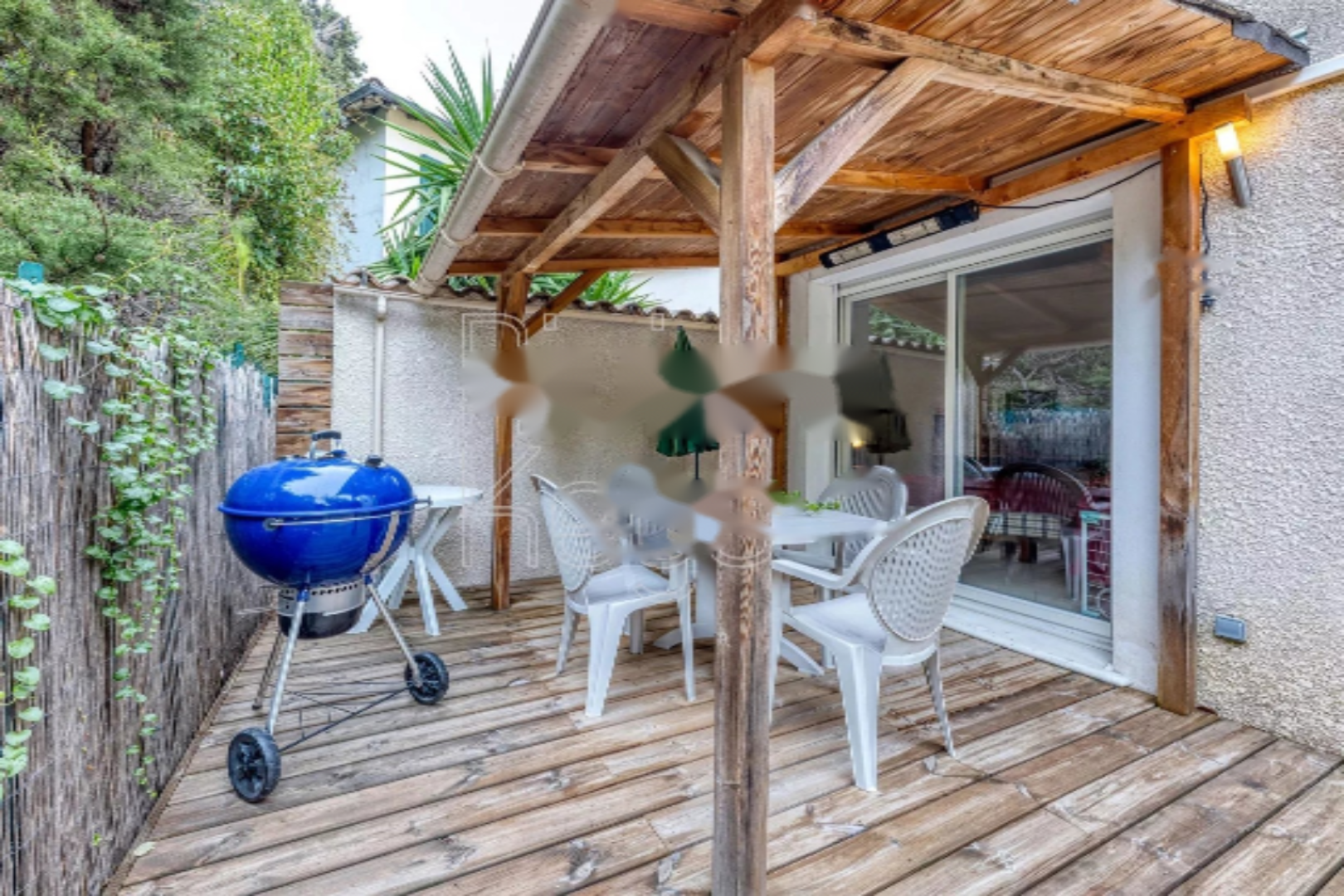 На этаже 3 спальни делят туалет с раковиной. Все комнаты, включая гостиную, оборудованы кондиционерами. Апартаменты пользуются прекрасной юго-западной экспозицией, террасой для обедов на свежем воздухе, балконом 4,3 м², частным гаражом, садовым домиком и частным выходом в центр города.