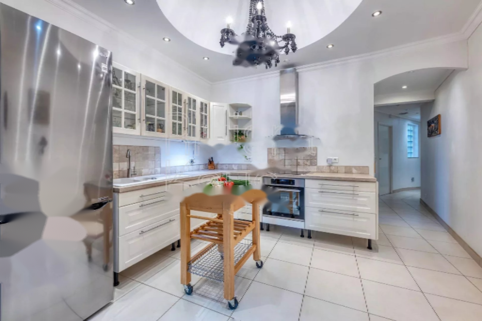 Красивый доступ в стиле замка ведет к светлому холлу, включающему ванную комнату с душем и ванной, гостевой туалет и универсальное помещение для стирки/хранения. Просторная гостиная 38,5 м² предлагает открытую кухню, закрытый камин и прямой выход в сад. Небольшая прилегающая комната может служить кабинетом, гостевой спальней или дополнительным пространством.