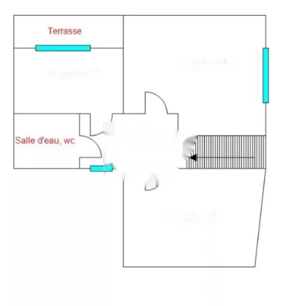 South and west exposure, 5 rooms, Year built 1940, 2-storey building, 1 balcony 4.3 m², 2 toilets, Individual reversible air conditioning, Living room 49 m², Unfurnished, 1 bathroom, 4 bedrooms, Fireplace.