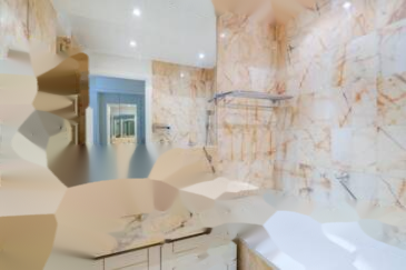 Основной люкс включает светлую и комфортную спальню, гардероб и ванную комнату с ванной и душем.
