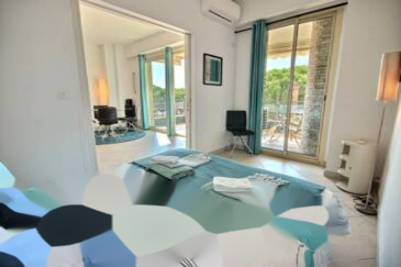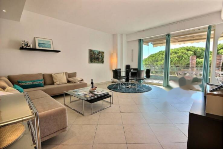 На продажу в Каннах на Круазетт: квартира типа 2 комнаты площадью около 51 м², расположена возле Порт Канто в районе Пальм-Бич. Состоит из прихожей, просторной гостиной с выходом на южную террасу, американской кухни, спальни и душевой комнаты. Продается с подвалом.