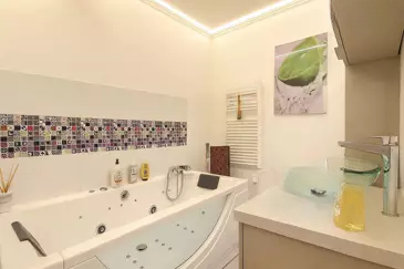 Включает в себя большую, светлую и просторную гостиную с выходом на красивую террасу с открытым видом, независимую кухню, а также зону отдыха, состоящую из первой спальни с ванной и гидромассажной ванной, второй спальни и душевой с туалетом.
