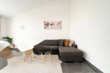 Вход с местом для хранения, светлая гостиная площадью 22 кв. м с высокими потолками и полуоткрытой полностью оборудованной кухней, ориентированный на юг и выходящий на приятную террасу площадью 20 кв. м.